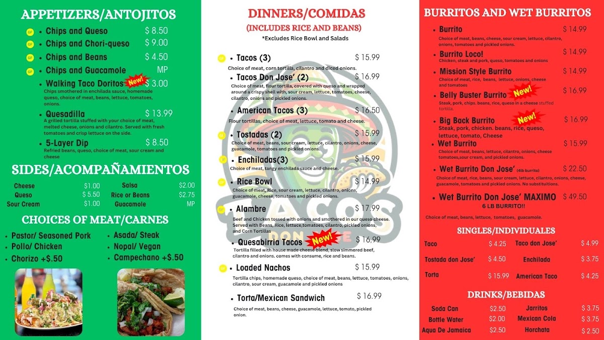 CHOICE OF MEAT. CORN OR FLOUR TORTILLAS, CILANTRO, ONIONS